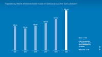Während bei der Reichweite das Fahrzeugangebot der Hersteller zumindest unter günstigen Bedingungen der Erwartungshaltung der Autofahrer langsam gerecht werden kann, liegen Anspruch und Wirklichkeit bei der akzeptierten Ladedauer noch weit auseinander. 58 % der Befragten hoffen auf eine Ladedauer von 30 Minuten oder weniger. In der Praxis ist das nur an den wenigen Ultra-Schnellladesäulen denkbar, an denen längst nicht alle Modelle aufgeladen werden können.