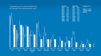 Vielleicht steigt auch deshalb der Anteil derjenigen, die sich autonomes Fahren für sich selbst vorstellen können. 30 % der Befragten geben an, dass sie das Lenkrad aus der Hand geben würden. Das sind 12 Prozentpunkte mehr als noch vor zwei Jahren. Gleichzeitig steigt allerdings auch der Anteil der Skeptiker von 29 auf jetzt 33 %. Geschrumpft ist somit nur die Gruppe der Unentschlossenen.